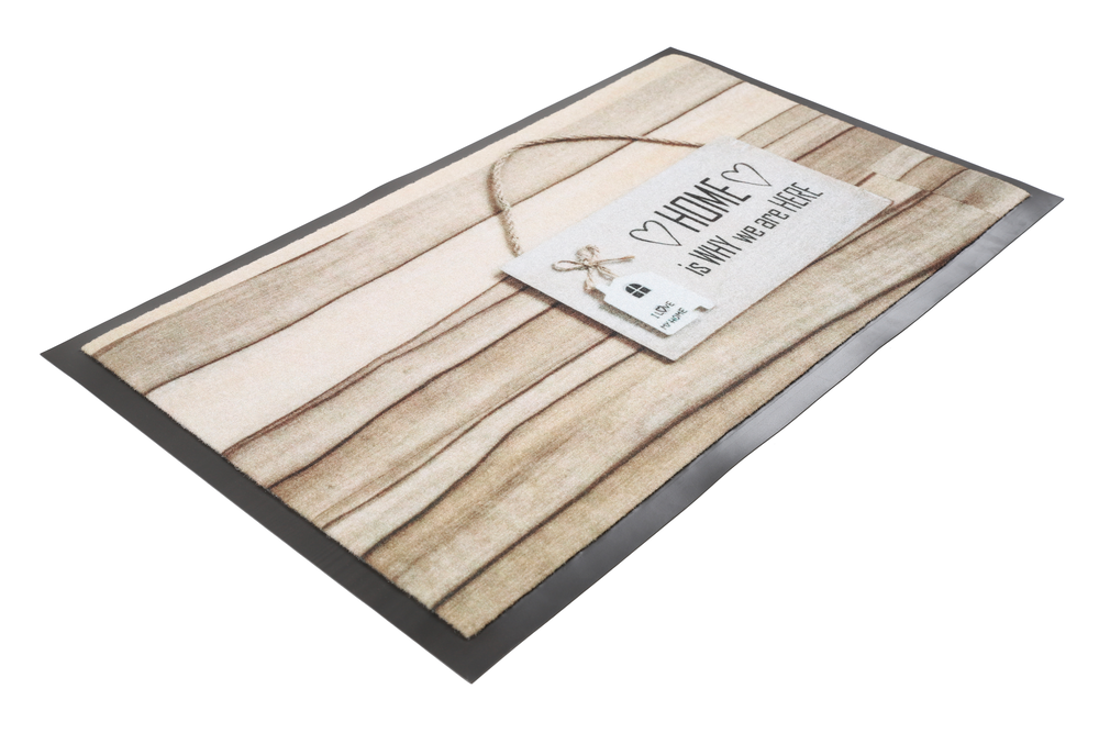 Tapis personnalisé conçu en polyamide, inscription home is why we are here, à rapporter sur le sol